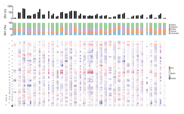 - Structural variant analysis: Application of GRIDSS–PURPLE–LINX for high-resolution detection and interpretation of somatic structural variation, combining SV calls, copy-number profiling, and event-level annotation to elucidate complex genomic rearrangements.