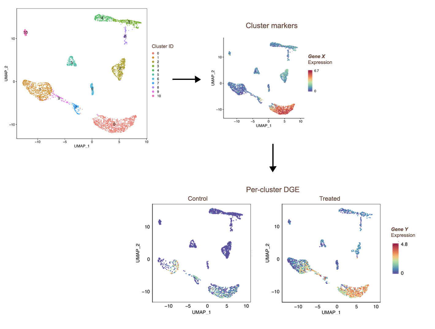 - Clustering & Cell Type Identification: Clustering of cells and annotation of cell types based on marker gene expression.